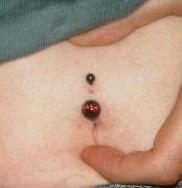 Encore une chose, et pas des moindres (puisque ça me fait me questionner depuis presque le tout début) : je ne suis pas pierceuse donc je ne connais pas la technique, mais j'ai toujours eu l'impression que j'avais été mal piercée... Quand je regarde des photos de piercing au nombril, je vois que la bille du bas sort bien par le repli du nombril (c'est à mon avis pas pour rien qu'un nombril n'est pierçable que s'il y a présence du repli cutané), or ça ne semble pas du tout être mon cas... On voit bien que le bijou arrive bien au-dessus de tout ça. Dans mon cas, j'ai l'impression que repli ou pas, ça n'a pas eu d'importance vu que ça n'arrive même pas dedans. Quand je retire le bijou, on voit clairement que les deux marques se situent au-dessus du nombril.
