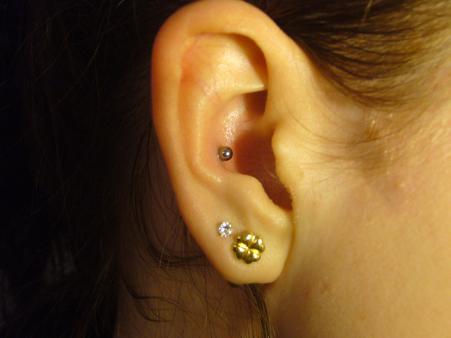 Deux piercings à l'helix, réalisés le même jour sur un jeune homme motivé