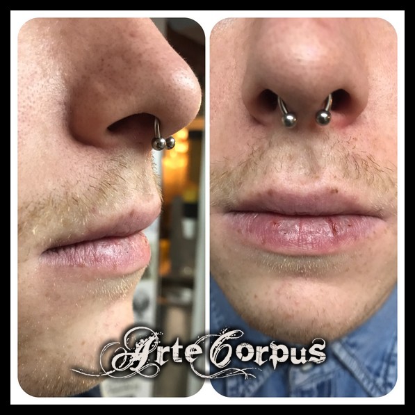 Nous avons ici deux nostriles en titane à strass blanc, et deux septums classique titane ! Enjoy it