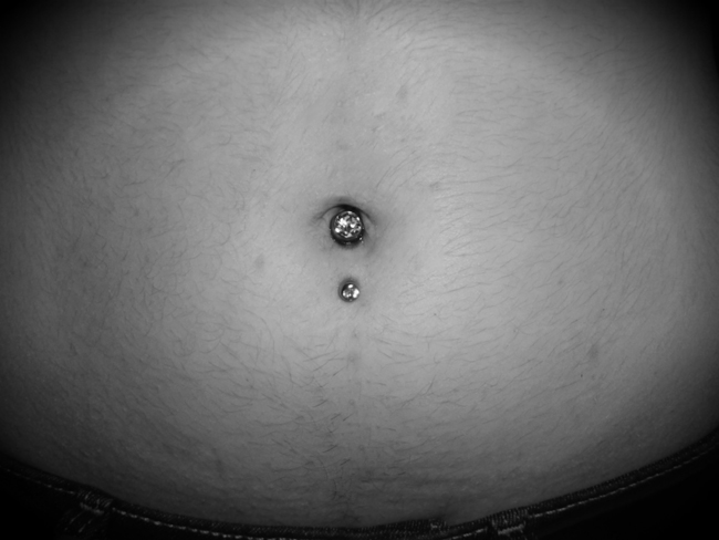 Bodmods : piercing : 2 stretchs 12mm - 1 stretch 1.6mm - capuchon vertical - téton gauche - smiley - nombril inversé / Tattoos : 2 étoiles australiennes