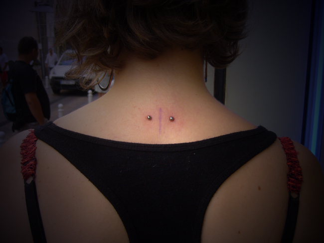 Et maintenant, petits microdermals dans le bas du dos, ils sont parfaitement cicatrisés, leur maman en prend bien soin, ils ont quasiment un an. Ce sont les premiers que j'ai posé à cet endroit.