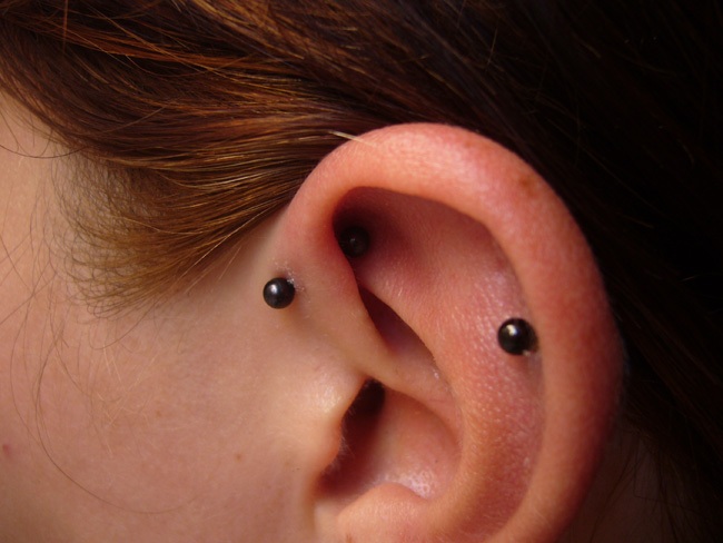 Le premier est un anti-helix, cicatrisé, avec un bijou en black line