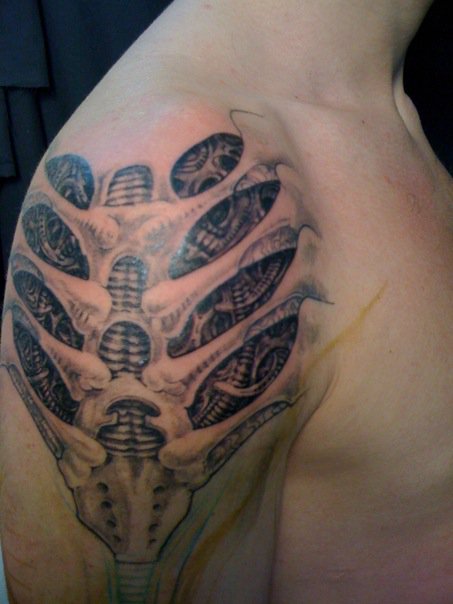 - Tattoo lettrages plumes gloires pectoral épaule par Laurent