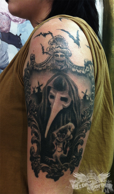 Bodmods : Tattoo: Sagittaire omoplate droite, Lettrage & partition d'une aine à l'autre