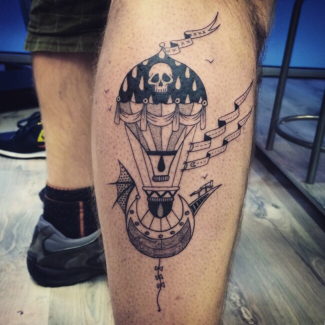 Bodmods : Lobes étirés en 8 mm, le tragus gauche et une koï sur le mollet gauche