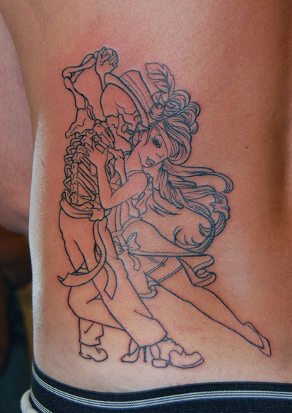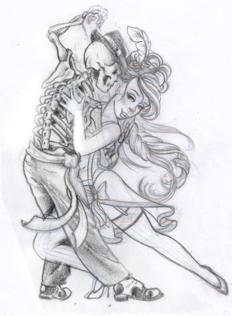 Le dead Tango de Nap... dessin en collabo avec Laurent qui a fait le squelette et moi la lichette.... merci Laurent!! et nap aussi qui n'a pas bougé pendant 3 heures!!