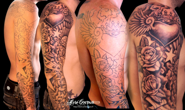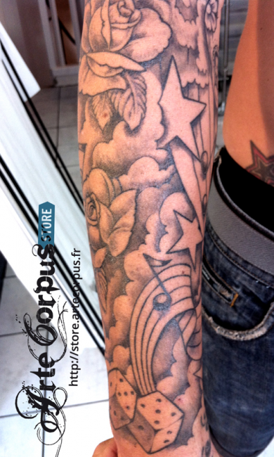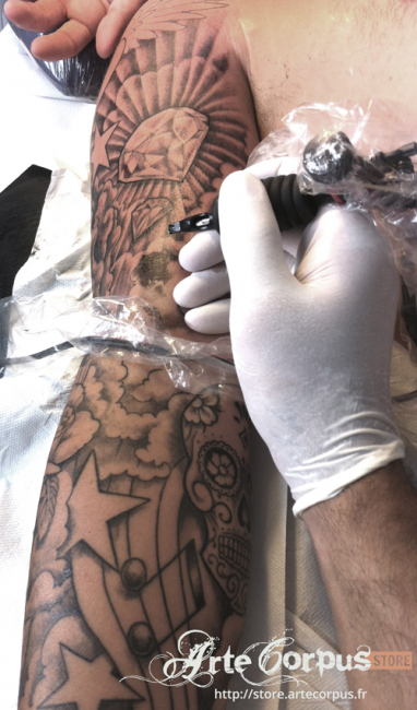 Une manchette commencée il y a quelques mois, en passe d’être finie, il reste encore quelques heures de travail, les ombres sont un poil sombres car les photos ont été prises en fin de séance et Monsieur a une tendance à bien rougir. je posterai le Tattoo cicatrisé lorsqu'il aura sa patine naturelle.