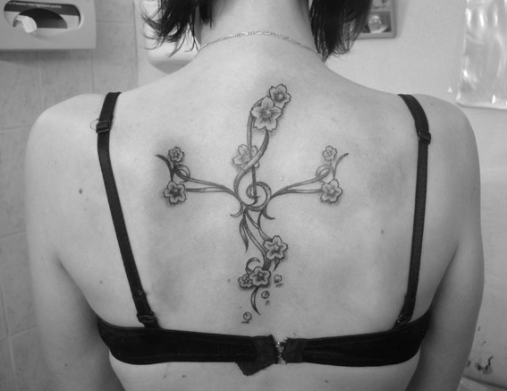 - Tattoo clef de sol fleurs de cerisier dos par Lichette