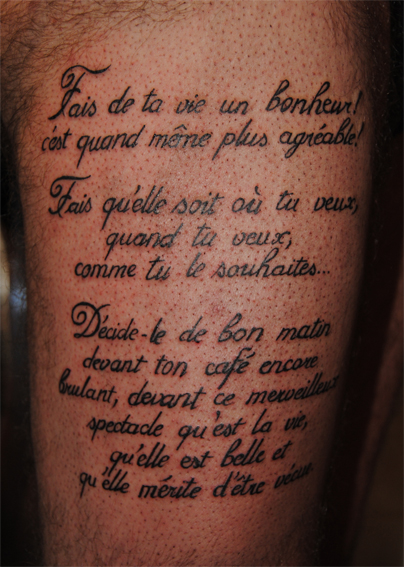 un tattoo (sur une cuisse) qui laisse à réfléchir sur le sens de la vie...