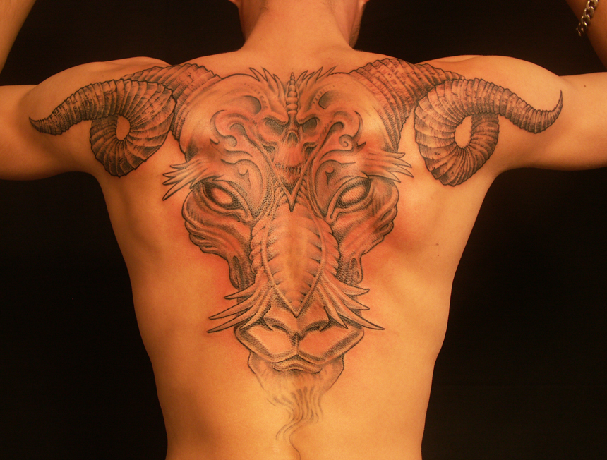 tatouage dos belier …